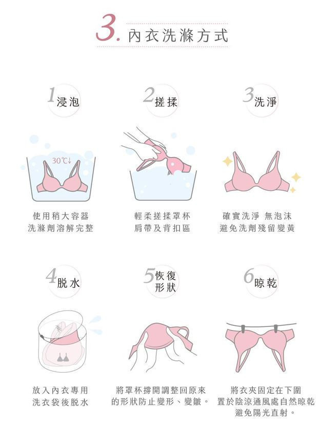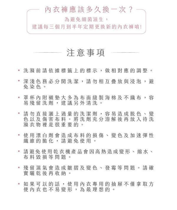 (2)罩杯處以溫風壓模成型,立體無痕,穿著更加貼膚,有如第二層肌膚,全天候裸感舒適。